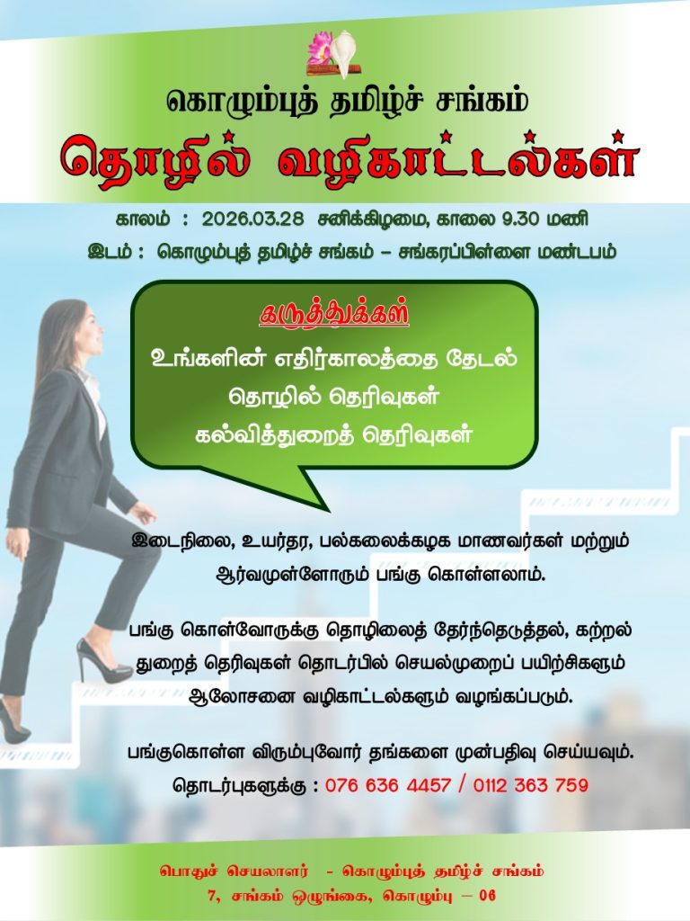 2026.03.28ம் திகதி சனிக்கிழமை காலை 9.30 மணிக்கு , சங்கரப்பிள்ளை மண்டபத்தில் நடைபெறும்.