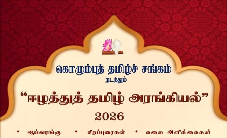 காலம் : 2026 ஏப்ரல் 17, 18, 19 இடம் : கொழும்புத் தமிழ்ச் சங்கம் – சங்கரப்பிள்ளை மண்டபம்